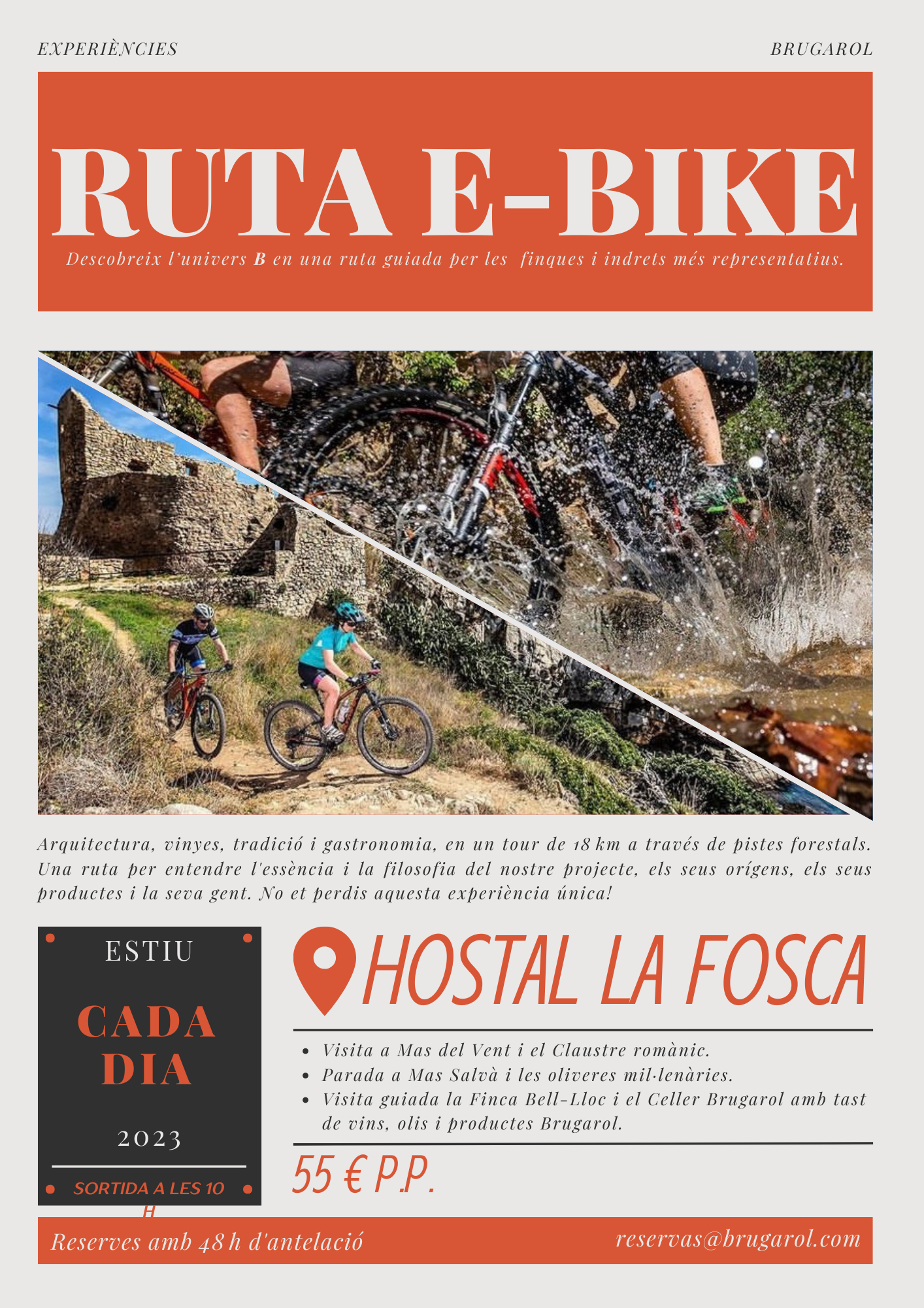 Reserves amb 48 h d'antelació a reservas@brugarol.com o 972 601 071